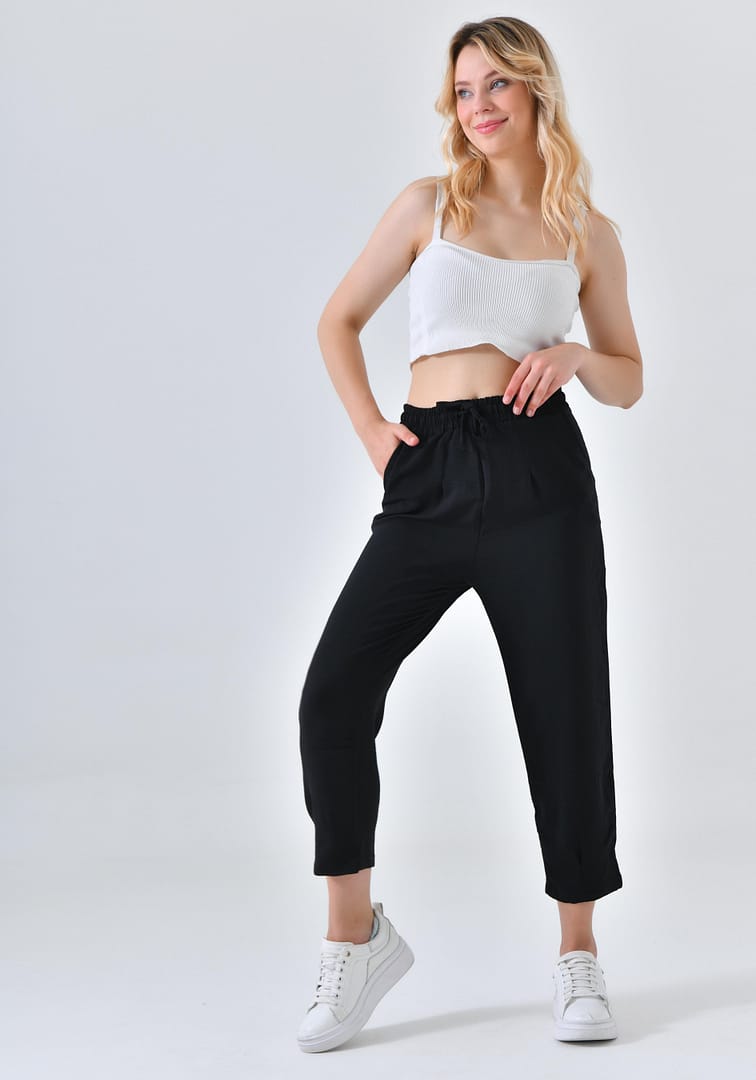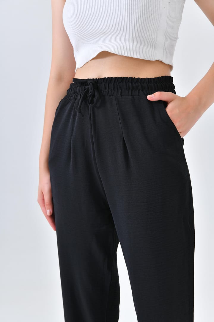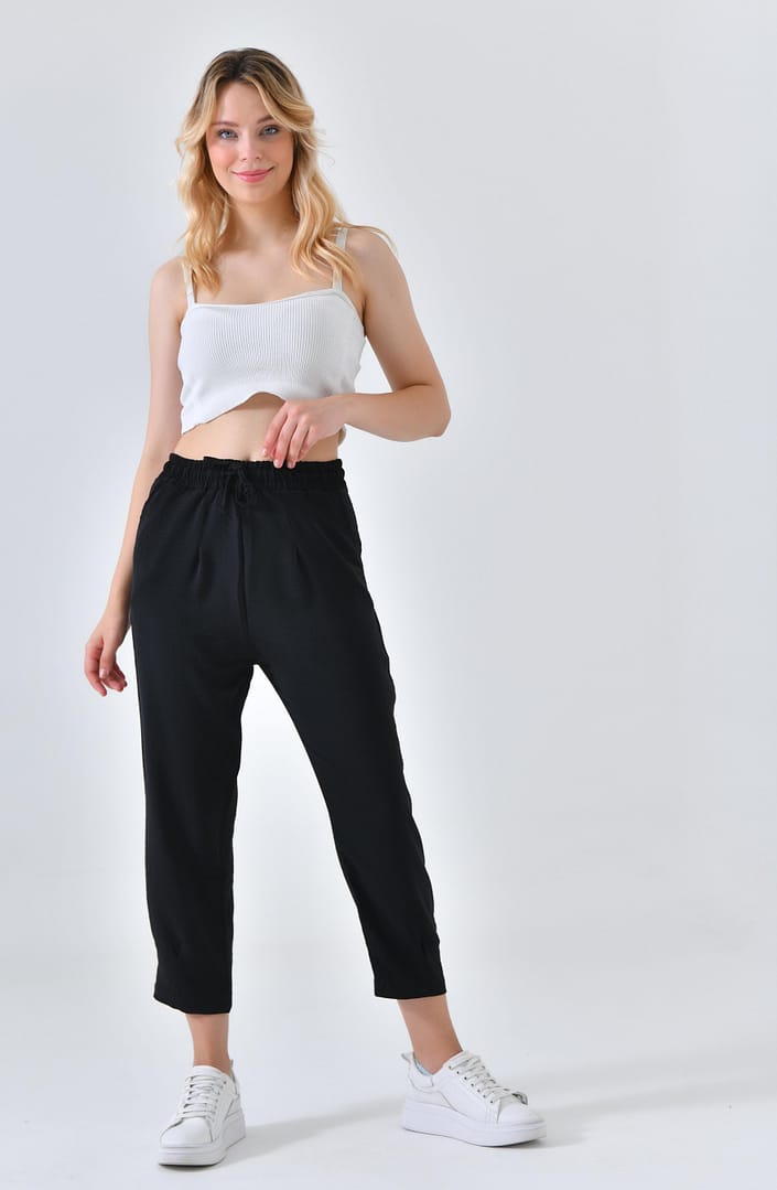 Ana Sayfa Genel Ana ekran Basic Beli Lastikli Siyah Boru Paça Aerobin Pantolon