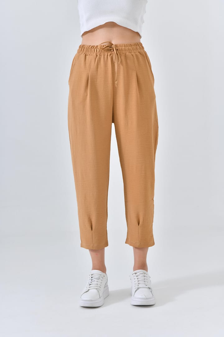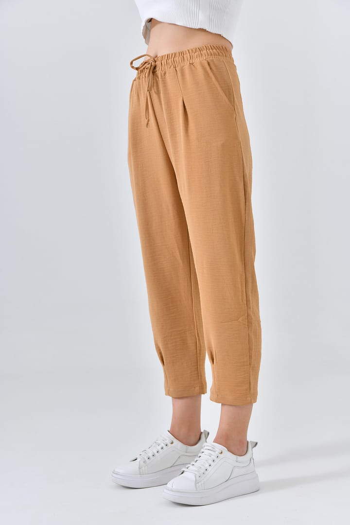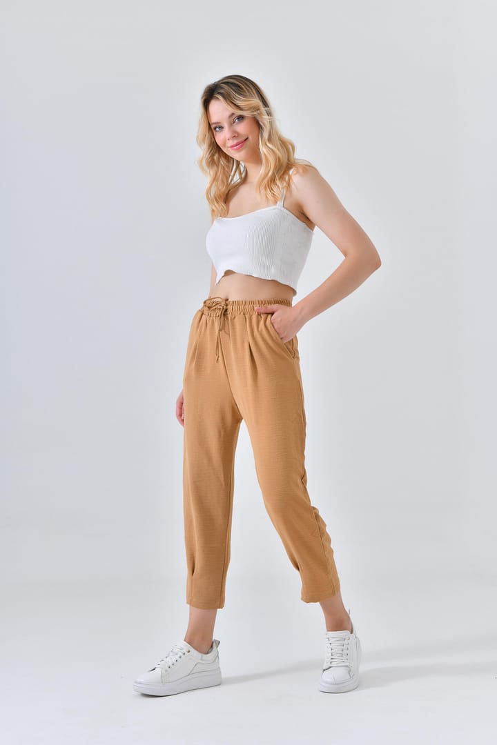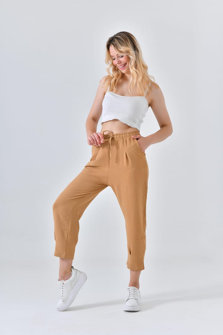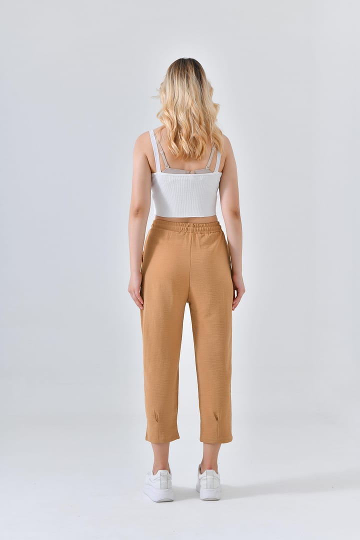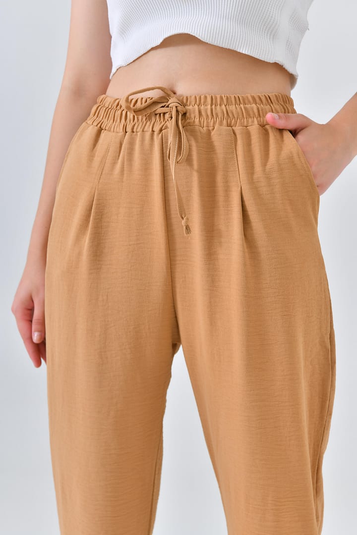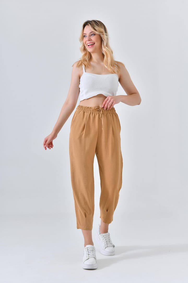 Ana Sayfa Genel Ana ekran Basic Beli Lastikli Krem Boru Paça Aerobin Pantolon