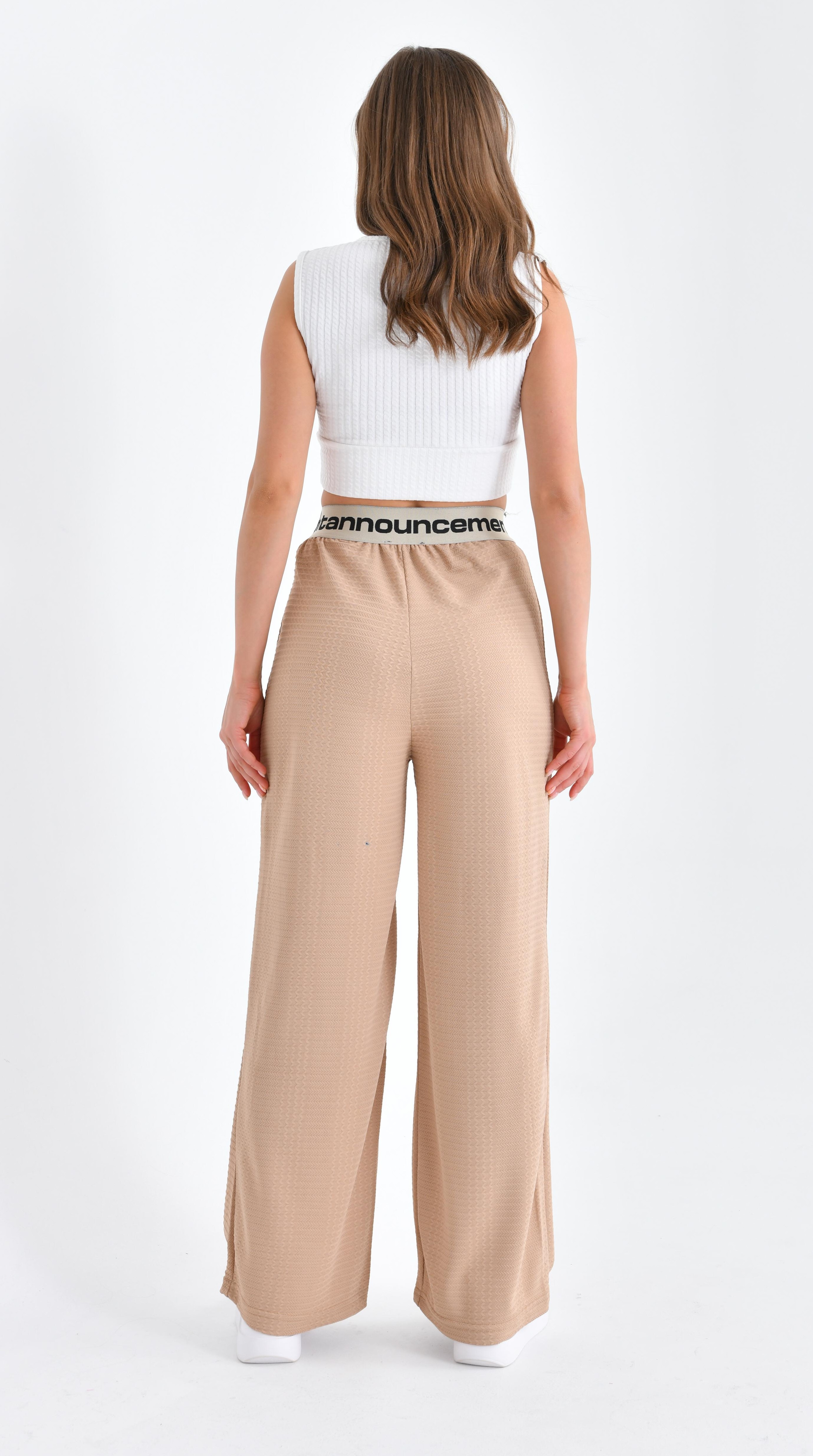 Ana Sayfa Genel Ana ekran Basic Beli Lastikli Krem Çavuş Desen Bol Pantolon